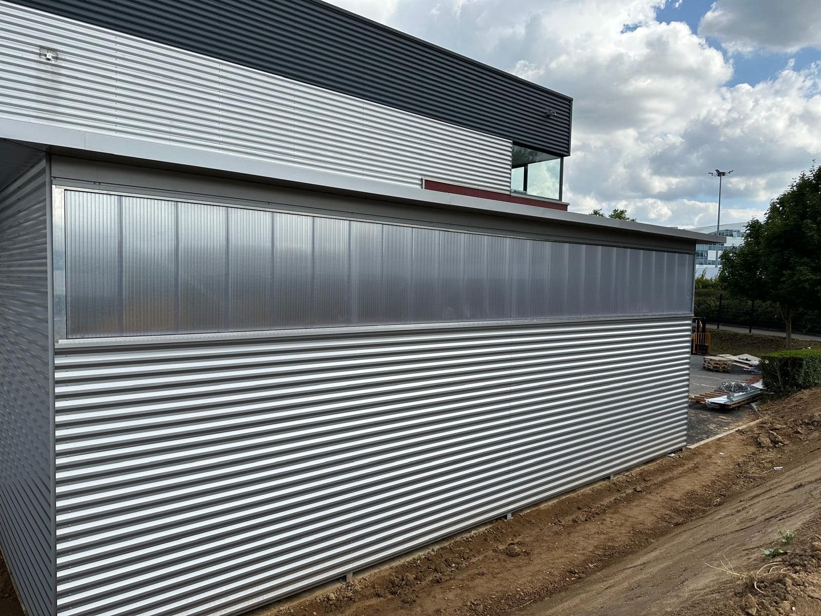 Maîtrise d’ouvrage : OGF Montant du Marché : 200 000 € HT Délais des travaux : 6 mois Type de marché : Entreprise générale : VRD, gros œuvre, charpente métallique, bardage, porte rapide et lots techniques